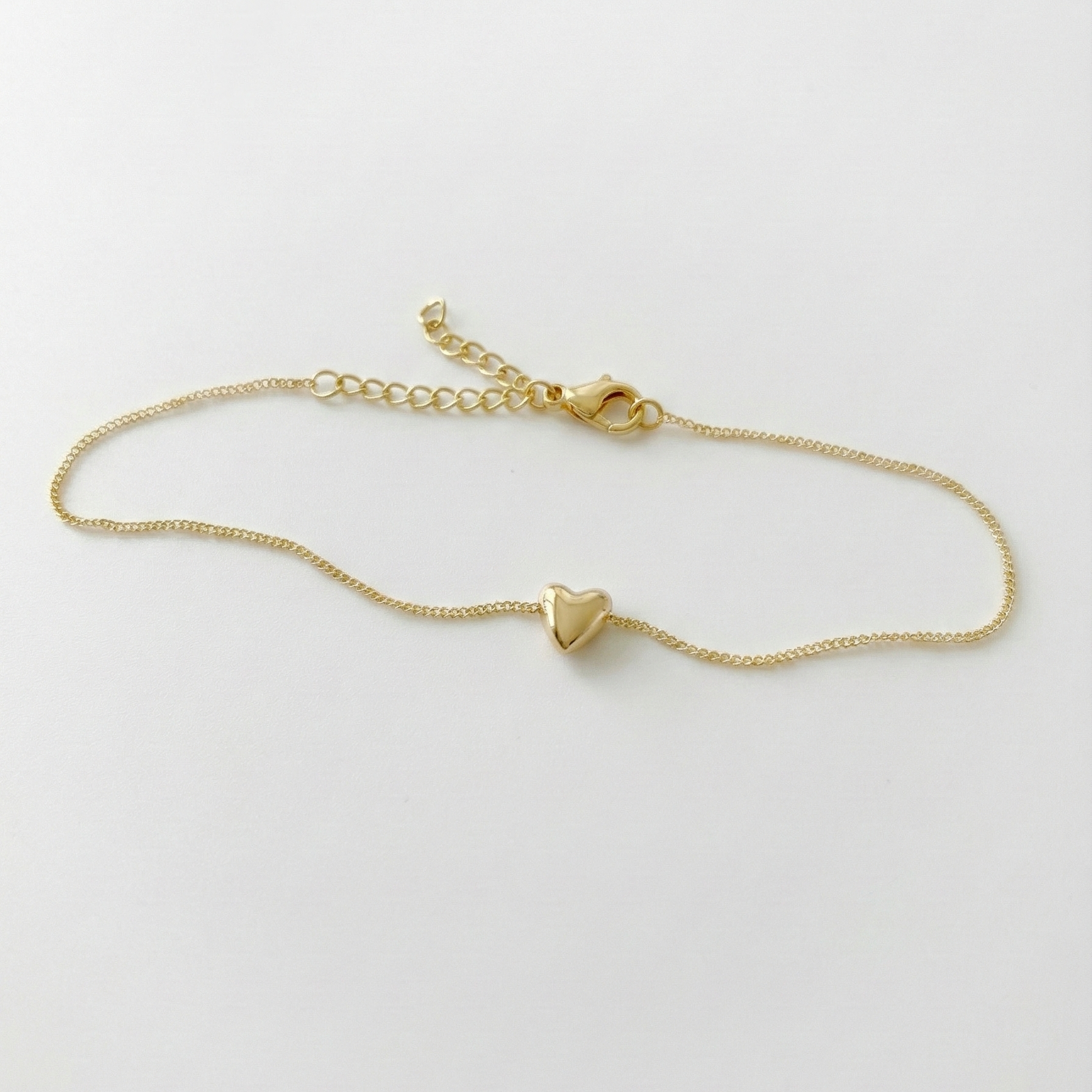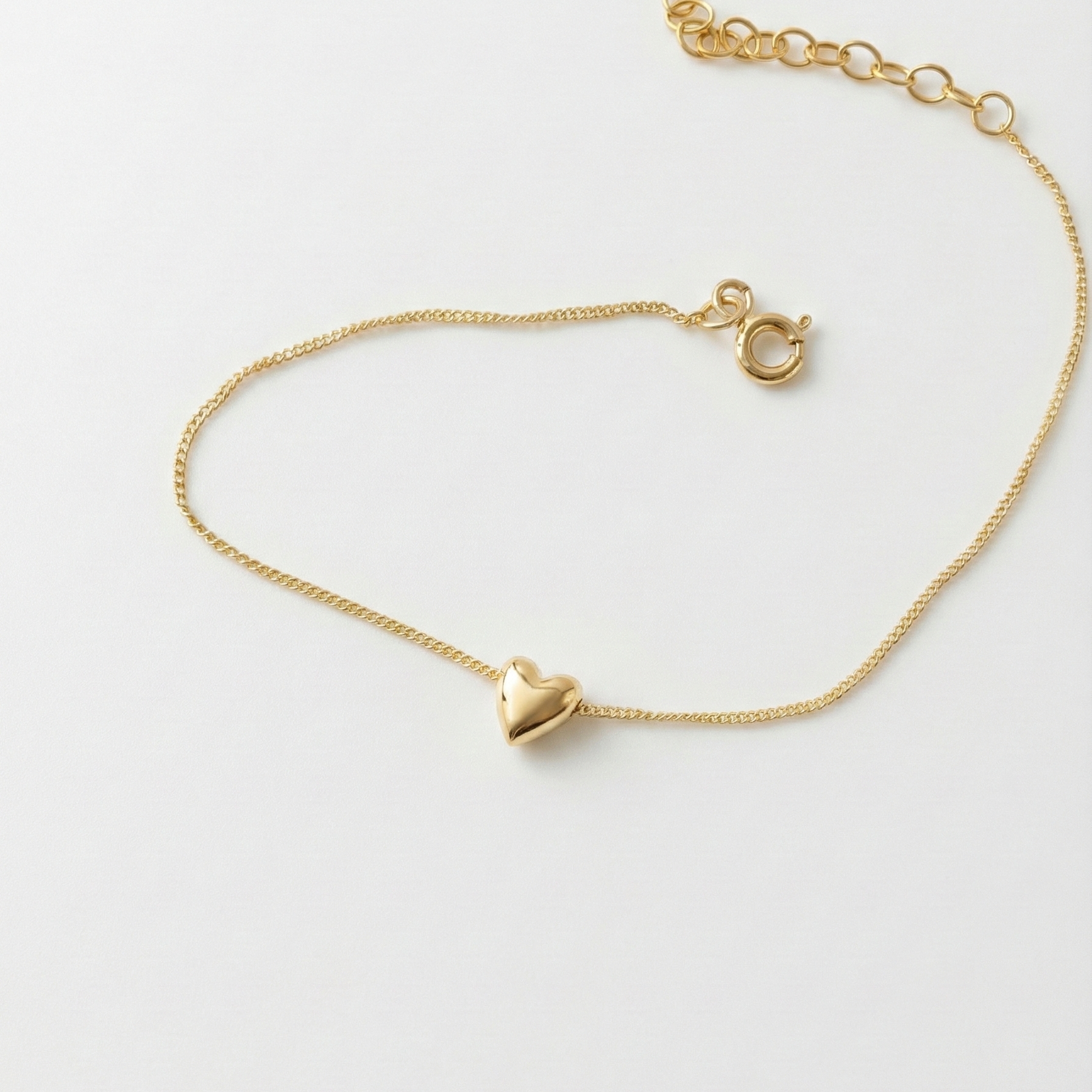 This delicate bracelet made of 14 karat gold features a tiny heart, symbolizing love, connection, and special moments.