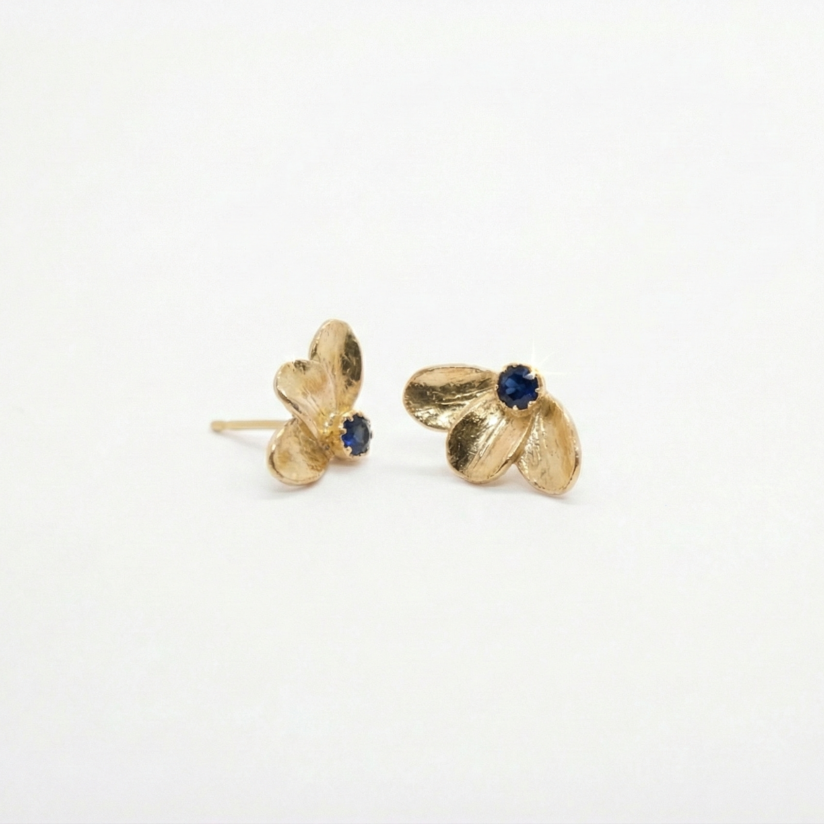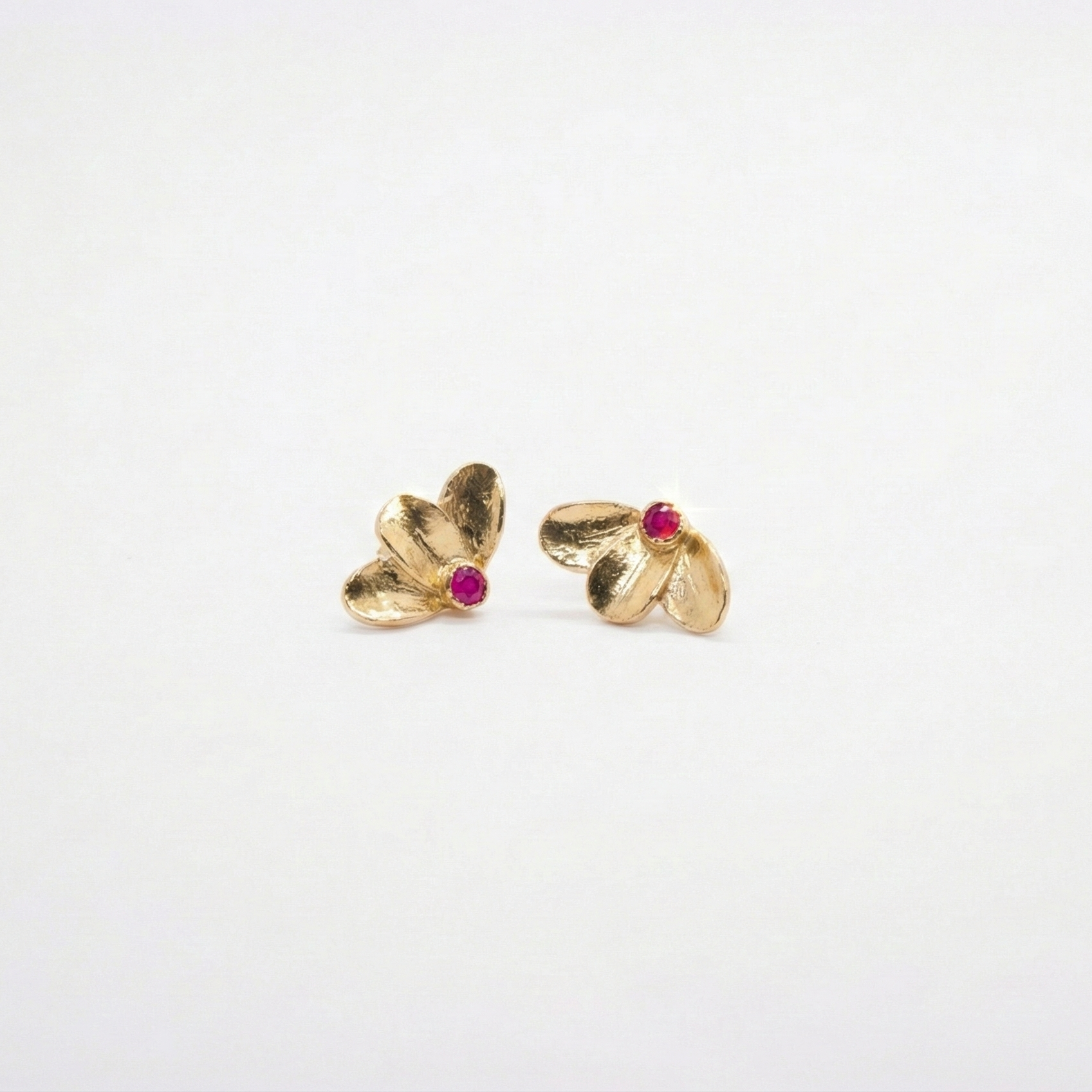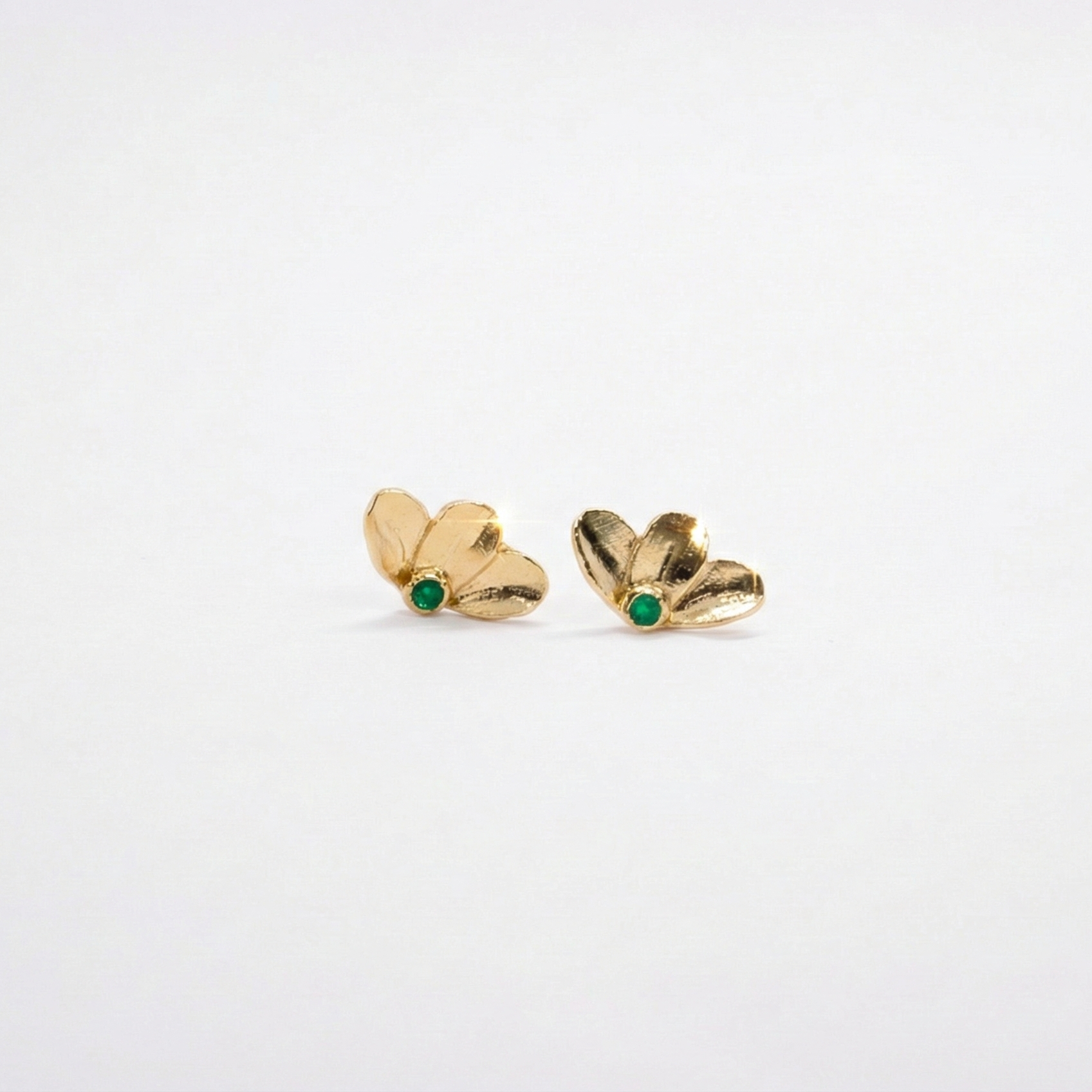 Small, floral, and full of charm—made from 14K gold with a natural gemstone at the center.