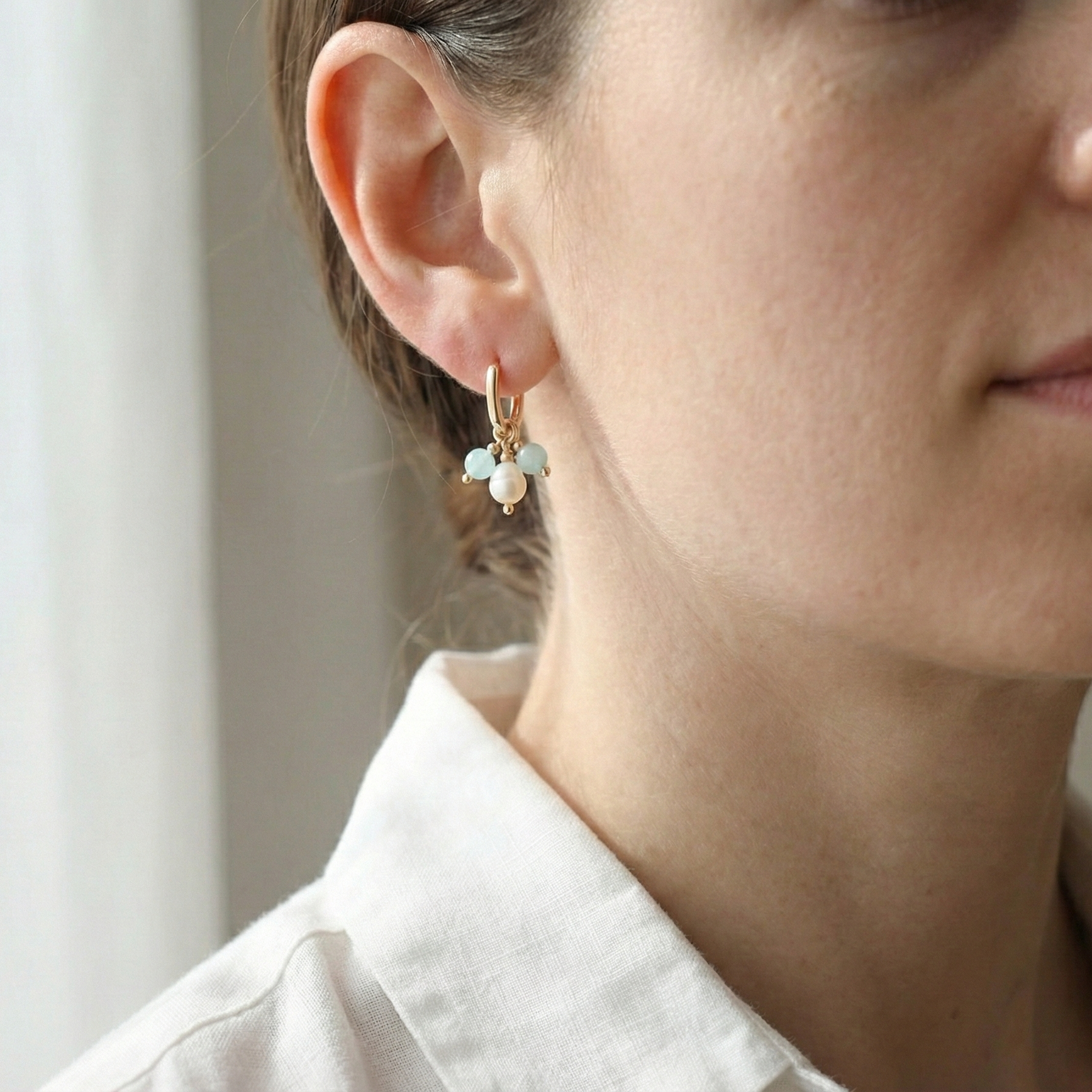 Fun, light-catching gold-plated earrings with hanging gemstone beads and real pearls — the perfect mix of playful color and effortless elegance.